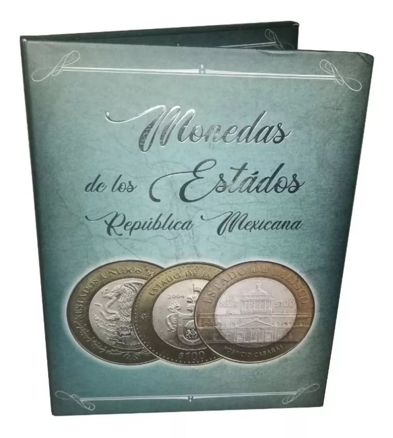 De tal modo, las describe solo como la colección completa de 32 monedas conmemorativas de 100 pesos de los estados de la República Mexicana, primera fase, con peso de 33.9 gramos y diámetro de 3.7 centímetros con anillo perimétrico de bronce-aluminio y centro de plata Ley .925 cada una, acompañadas por el álbum de alta calidad con 32 espacios en una carpeta guardapolvos protectora.