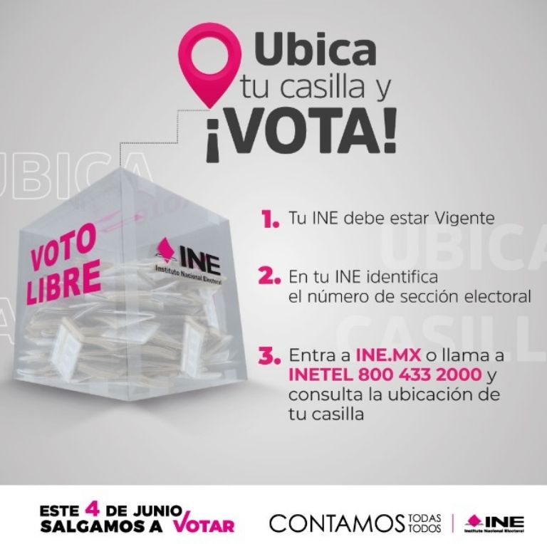 Entonces, una vez que tengas claro ese dato, tendrás que ingresar al portal Ubica tu casilla que gestiona el Instituto Nacional Electoral (INE). Para hacerlo, da clic en el siguiente link. ¿Qué es lo que te solicitarán? El nombre del territorio en que habitas, en este caso Estado de México; así como tu número de sección. De esa forma te brindarán la dirección exacta.