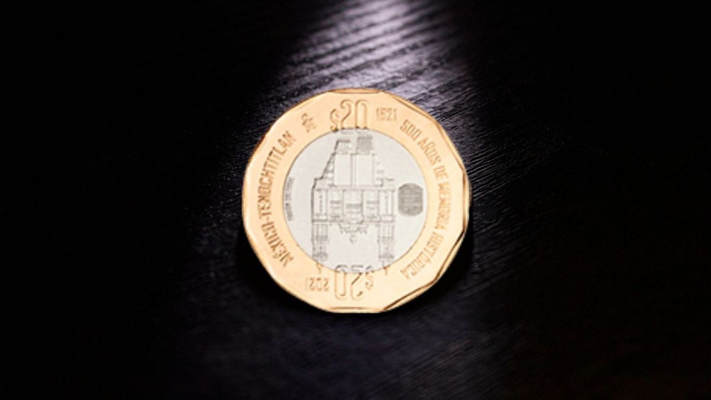 En ese sentido, la moneda de 20 pesos en cuestión fue liberada en 2021 con motivo de los 500 años de memoria histórica México – Tenochtitlan y llama poderosamente la atención porque es dodecagonal y en una de sus caras es posible ver un reflejo de la Catedral Metropolitana junto con el Templo Mayor.