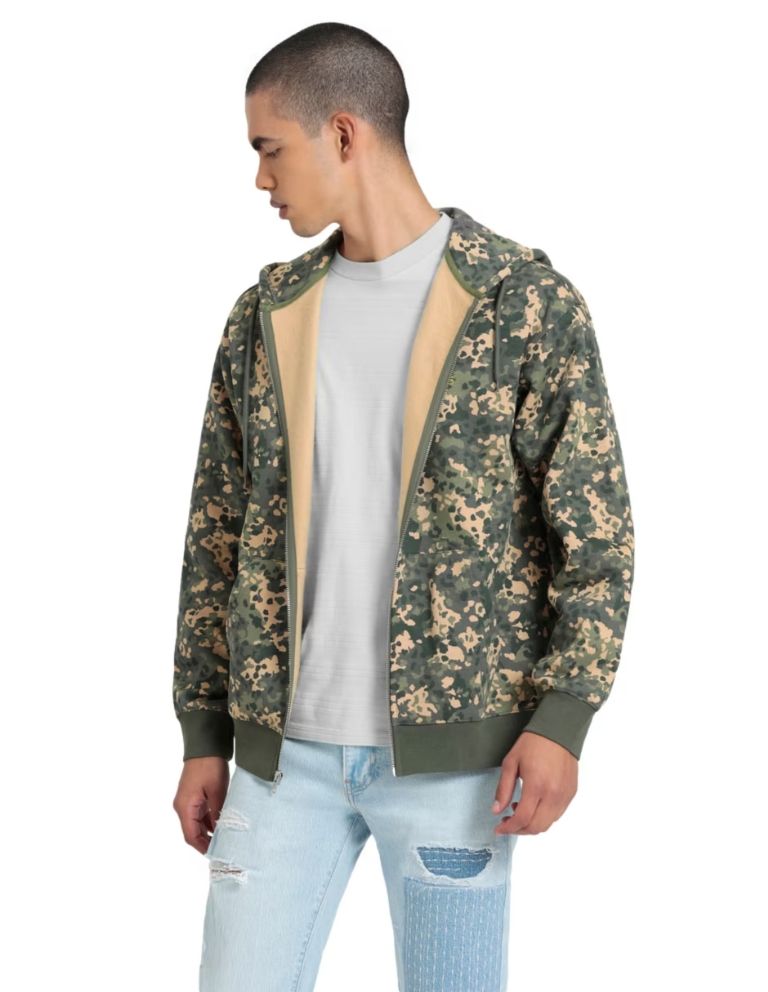 - SUDADERA CAMUFLAJE: De mil 599 a 799.50, esta sudadera con código 1129111504 y capucha será tu favorita para mantenerte cómodo todo el día. Para crear un look relajado de fin de semana, puedes combinarla con tus pantalones favoritos.