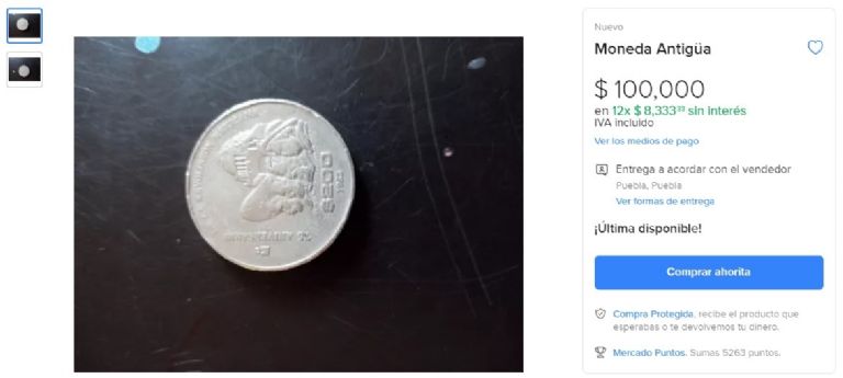 ¿Cuál es la moneda mexicana por la que piden 100 mil pesos en Mercado Libre?