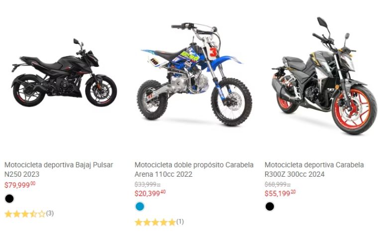 La primera motocicleta que acapara por completo la atención es la Carabela Arena 110cc 2022, quien tiene una reducción de 34 mil pesos a solo 20 mil 399 pesos. Otra que ha llamado poderosamente las miradas es la Carabela Bat 150cc 2023, la cual cuenta con un costo de 26 mil 399 pesos.