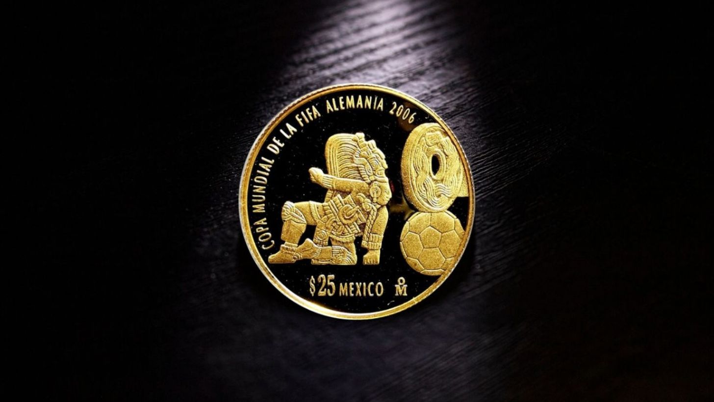 En ese sentido, antes del Mundial de Alemania 2006 el Banxico emitió una moneda con ¼ de onza de oro que hacían alusión al Juego de Pelota precolombino y es que la intención era hacerse parte de ese acontecimiento deportivo de importancia internacional; en el anverso está el Escudo Nacional y en el reverso un jugador de la cultura maya con un penacho.