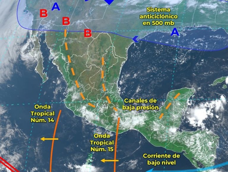 Una circulación anticiclónica en niveles medios de la atmósfera sobre el suroeste de Estados Unidos mantendrá el ambiente muy caluroso a extremadamente caluroso este sábado 22 de julio con temperaturas máximas superiores a 40 grados sobre estados del norte, noreste y noroeste de México.