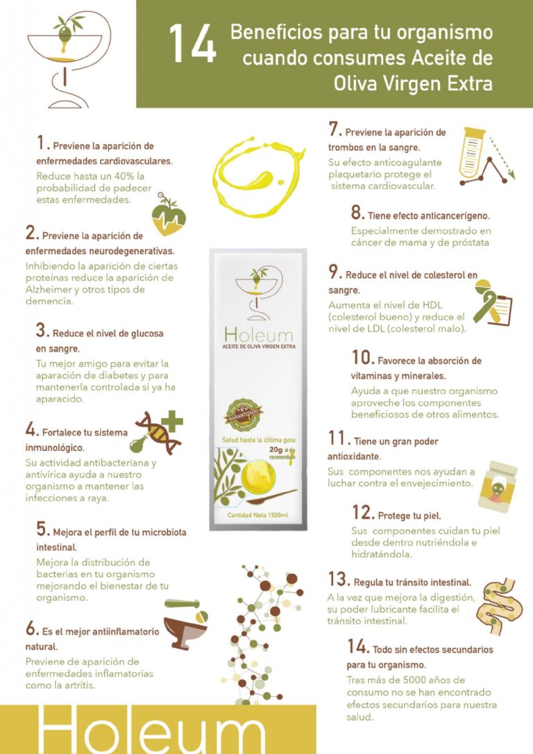 De hecho, si consumes una cucharada de aceite de oliva en ayunas promete limpiar el organismo de toxinas del hígado y otros órganos, aliviar la indigestión, dolor de estómago y hasta te ayuda a perder peso, además de que calma el apetito y te aporta oleiletanolamida, compuesto derivado del ácido oleico que ha demostrado científicamente su capacidad de promover la aceleración del metabolismo y el consumo energético.
