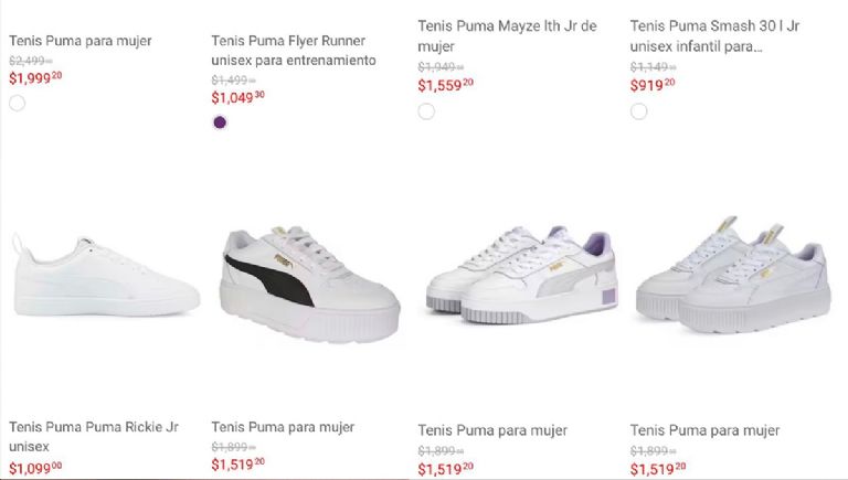 - Tenis Puma para muer de $1,999 a $1,599.20 pesos.