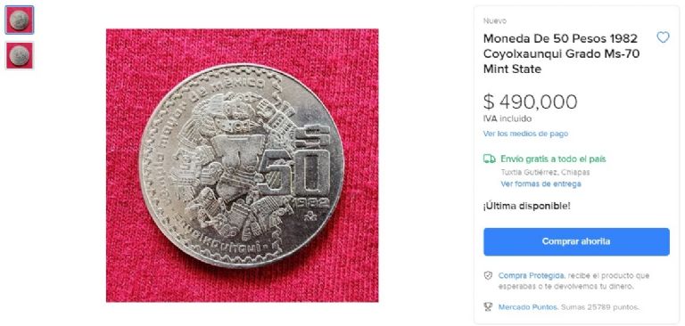 Una moneda de 50 pesos está acaparando los reflectores en Mercado Libre. Su vendedor afirma que está en condiciones únicas y la vende por casi medio millón de pesos en Internet. ¿Cuáles son sus características generales y qué rasgo es el que le permite resaltar de entre el resto? Aquí te lo decimos.