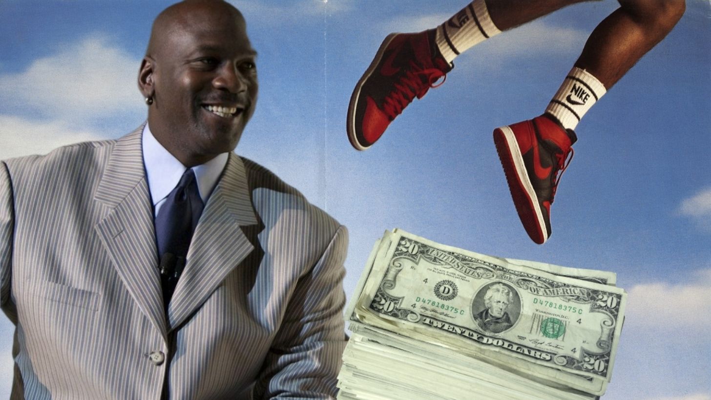 Los tenis de Michael Jordan son los más vendidos en todo el planeta, tanto que los Air Jordan el año pasado facturaron más de 3 mil millones de dólares y el jugador, que en toda su carrera en salarios no llegó a los 90 millones, ahora tiene una fortuna superior a los 2 mil millones de billetes verdes por su contrato con Nike.