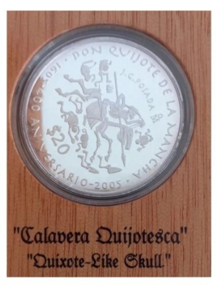 Se trata de una moneda de plata que fue puesta en circulación en 2005, con tal de honrar los 400 años de Don Quijote de La Mancha; ya que la obra fue publicada en 1605 en España. Contaba con un valor nominal de 20 pesos mexicanos; aunque su dueño la tasó en más de 20 mil pesos. ¿En cuánto exactamente? 22 mil 500 pesos.