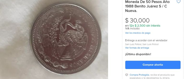 Esta moneda de 50 pesos fue emitida por el Banco de México y se trata de un objeto de colección por el simple hecho de ya no formar parte de la circulación actual, lo cual hace que su precio en plataformas digitales sea más elevado. Dicho lo anterior, sobresale que el dueño pida 30 mil pesos, una cantidad importante para algunos interesados.