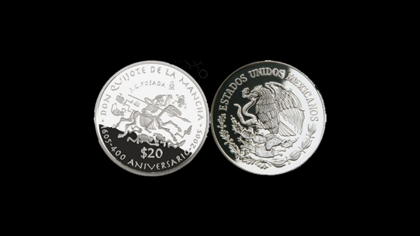 En ese sentido, la rara onza de plata en cuestión fue liberada en 2005 para conmemorar el 400 aniversario de la publicación de ‘El ingenioso Hidalgo don Quijote de la Mancha’ de Miguel de Cervantes Saavedra; en una cara tiene impresa una calavera de José Guadalupe Posada, mientras que en la otra está el Escudo Nacional.