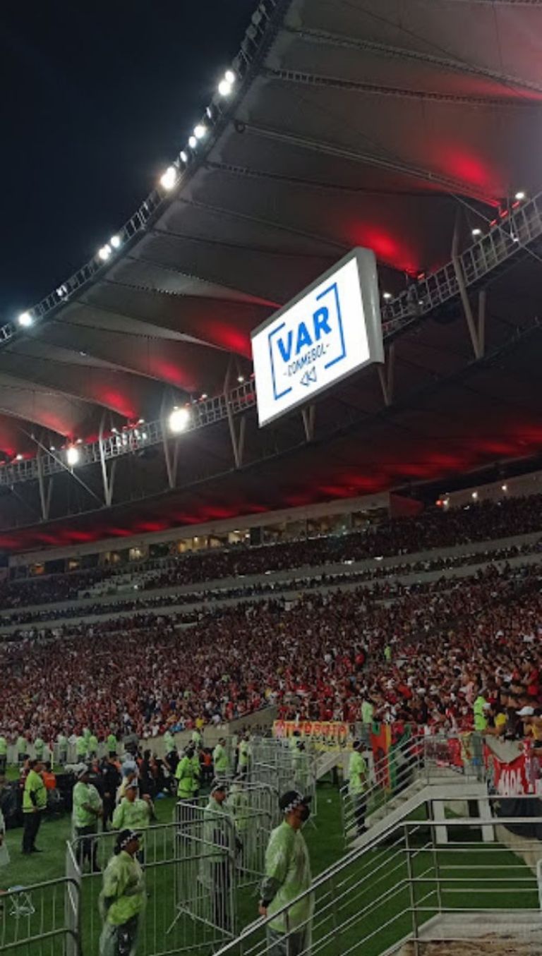 Las acciones del partido se ven a la perfección, la gente ondea unas telas con los colores del Flamengo. Me cuesta trabajo poner atención, lo bueno está en las tribunas, en la fiesta que dura del minuto 1 al minuto 90, sin pausa, sin cansancio. Las butacas maltratadas se usan muy poco.