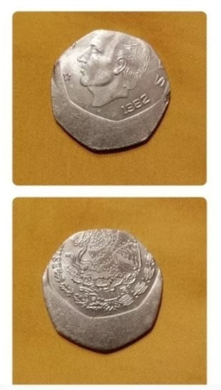 Dado que integró la segunda tanda monedas, que se emitió entre 1978 y 1985, su peso es de 14 gramos; su borde, liso; su diámetro, de 30.5 milímetros; asimismo, está compuesta de cuproníquel. ¿Qué error de acuñación es el que eleva su precio a 5 mil pesos? Esto es lo que se sabe.