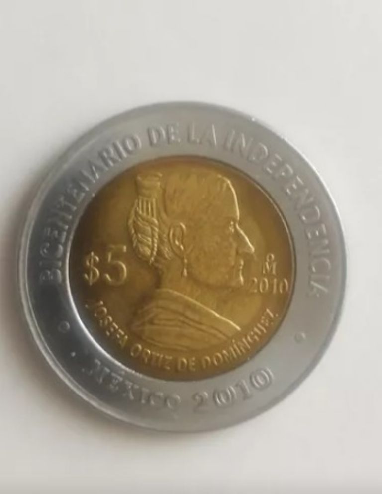 La principal característica de esta moneda de 5 pesos es que, al frente, cuenta con el rostro de Josefa Ortíz de Domínguez, uno de los personajes más representativos que hay en la historia de la Independencia de México. Otro punto a destacar es que el ejemplar se acuñó en el año 2010 y, de acuerdo con su propietario, es totalmente nuevo.