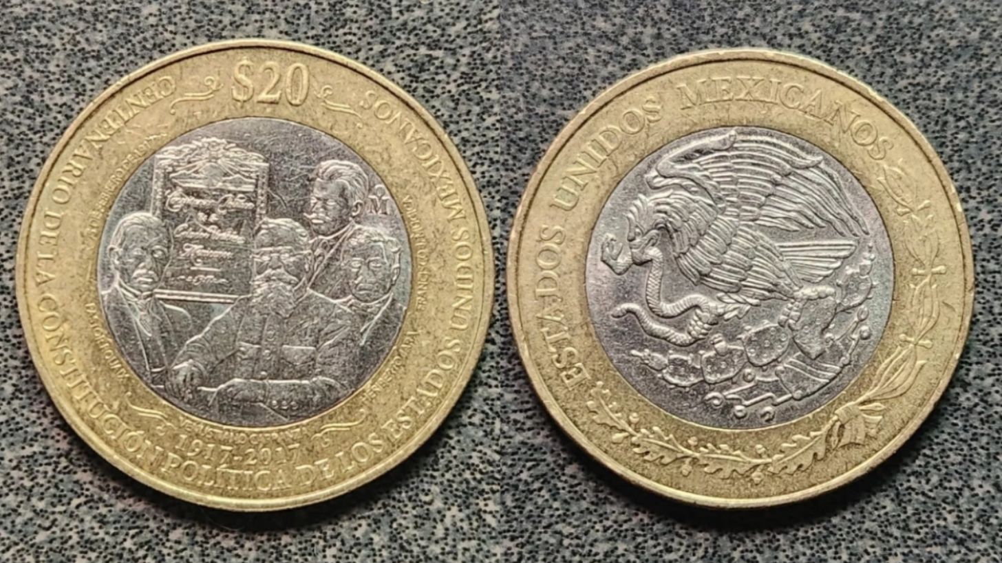 Se trata de una moneda mexicana conmemorativa de la promulgación de la Constitución Política de los Estados Unidos Mexicanos del 5 de febrero de 1917, circular, con diámetro de 32 milímetros y peso de 15.945 gramos, con valor nominal de tan solo 20 pesos pero por la que piden 2.5 millones al considerarse de colección.