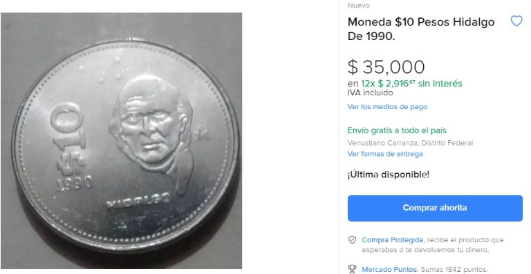 La moneda de 10 pesos que estás a punto de conocer, por lo tanto, se vende en Mercado Libre, una de las plataformas especializadas en la compra y venta de artículos relacionados a este apartado. Si eres un coleccionista y quieres saber por qué el propietario de esta pide 35 mil pesos, entonces no te puedes perder la siguiente información.