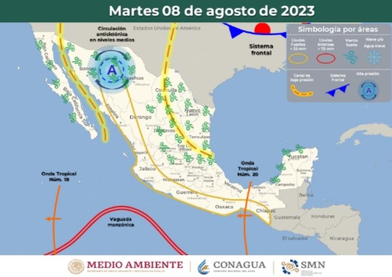 De acuerdo con información entregada por el Gobierno de México a través del Servicio Meteorológico Nacional, estos 11 estados del país sufrirán los estragos de las lluvias fuertes y ciertas descargas eléctricas derivadas de la Onda Tropical 20 para este martes 8 de agosto del 2023, motivo por el cual debes seguir las recomendaciones de las autoridades.