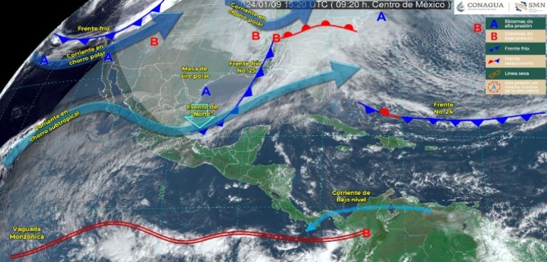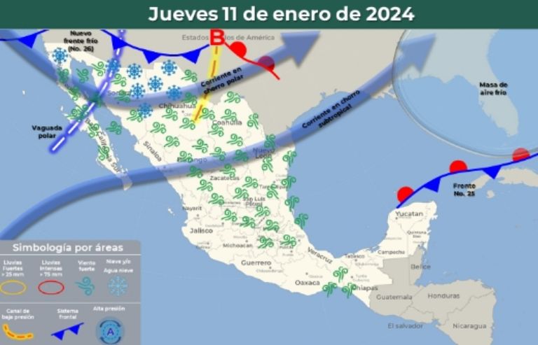 Cuando se pensaba que las altas temperaturas volverían a la República Mexicana, todo ha vuelto a cambiar. Las autoridades recientemente confirmaron la llegada del Frente Frío 26, motivo por el cual en los próximos párrafos conocerás los estados que tendrán heladas de -5, -10 y -15 grados durante este jueves 11 de enero del 2024.