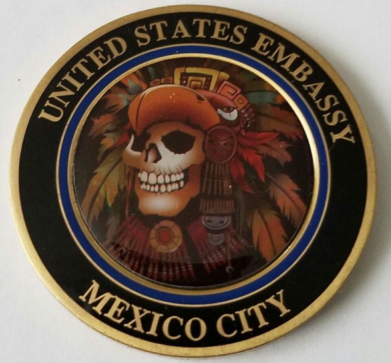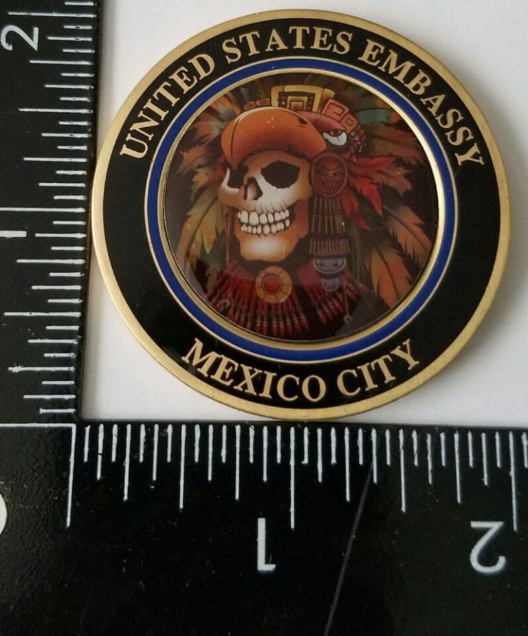 En ese sentido, un usuario en eBay ofrece una moneda por 749.99 dólares que equivalen a más de 13 mil pesos al tipo de cambio actual; en una de las caras es posible apreciar el Escudo Nacional con la bandera de México y ocho calaveras, mientras que en la otra hay una calavera con un penacho y la leyenda ‘United States Embassy, Mexico City’.