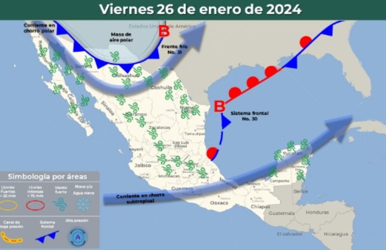 Y, por si el Frente Frío 30 fuera poco, el país se dice listo para la llegada de un nuevo Frente Frío que podría arribar por la tarde de este viernes 26 de enero y que, por ende, generará nuevas heladas de -10 grados gracias a la corriente en chorro polar que, a la par, podría producir vientos fuertes y muy fuertes con tolvaneras en estas regiones.