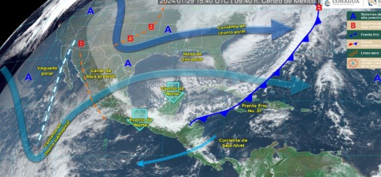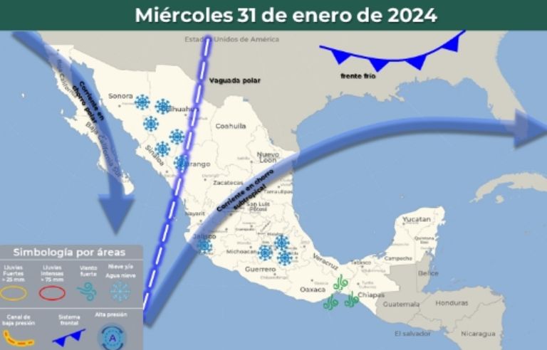 Y, aunado al Frente Frío 31, la vaguada polar tendrá la capacidad de extenderse hacia el noreste y norte gracias a su interacción con el ingreso de humedad que se generó a través de las corrientes en chorro polar y subtropical. Debido a ello, la República Mexicana deberá experimentar un nuevo periodo no solo de lluvias y chubascos, sino también de heladas y posible caída de nieve en algunos estados.