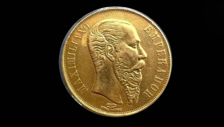 En el anverso de la moneda de oro por la que piden 170 mil pesos se encuentra grabada la leyenda “Imperio Mexicano” junto con la imagen del Orden Imperial del Águila, mientras que al reverso se pude observar la efigie del Emperador Maximiliano de perfil izquierdo.