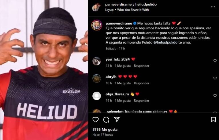 Pame Verdirame no oculta extrañar a Heliud Pulido, la ex participante de Exatlón México se quebró en un emotivo mensaje. Si bien echa de menos a su esposo, dejó claro apoyarlo: “Me haces tanta falta. Que bonito ver que seguimos haciendo lo que nos apasiona, ver que nos apoyemos mutuamente para seguir logrando sueños, ver que a pesar de la distancia nuestros corazones están unidos. A seguirla rompiendo Pulido @heliudpulido te amo”.