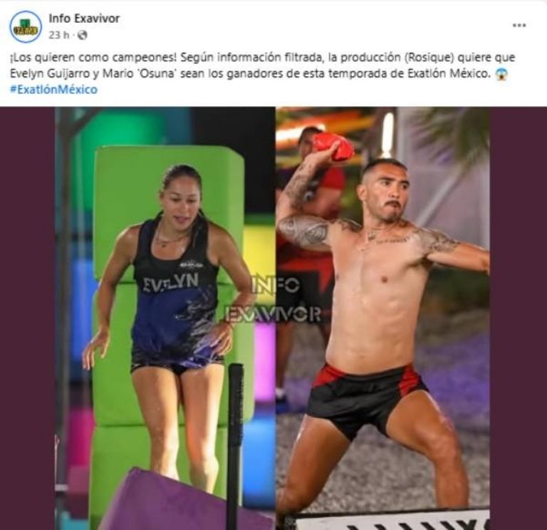 Fue en la cuenta de Facebook Info Exavior donde se filtró que, presuntamente, Antonio Rosique quiere como ganadores a Evelyn Guijarro o Mono Osuna. Si bien esta no es información confirmada, ambos atletas han mostrado las condiciones para llegar lejos en Exatlón México. Sniper es una de las figuras del equipo azul, mientras Mario ha sorprendido en los circuitos pese a estar en su primer año dentro del reality show.