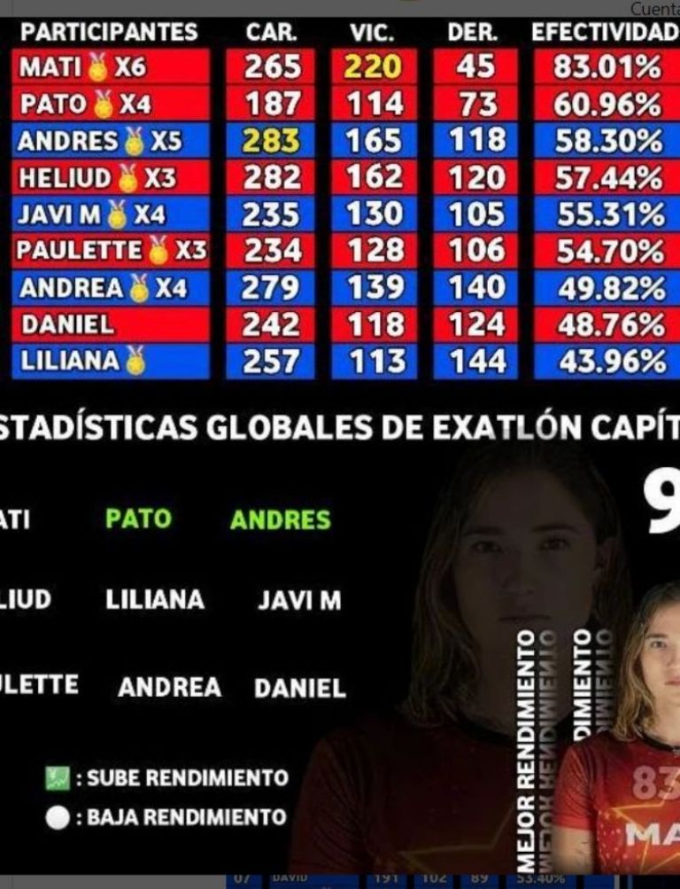 La velocidad y fuerza de tiro de Heliud no se critica o expone, al contrario, es una de las mejores del reality, pero eso no es lo único que hace que un atleta salga campeón. Pato y Andrés cuentan con algunas debilidades, pero aún con ello han sabido anteponerse por su fuerza mental y así ganar circuitos cruciales. Por su parte, Heliud se ha visto débil, a tal punto que ha llegado a tener discusiones con su propio equipo en esta y anteriores ediciones.