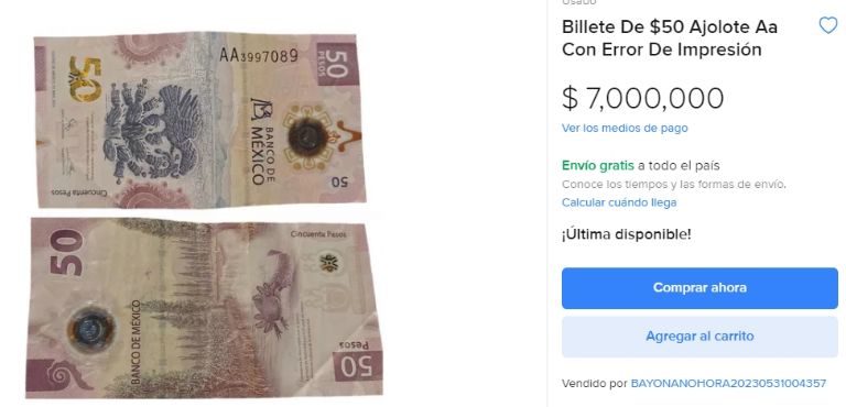 Se ha vuelto común que las y los consumidores de las redes sociales disfruten de artículos relacionados a la numismática que, a su vez, destacan por contar con precios realmente elevados. No obstante, uno que ha superado por completo las expectativas es este billete de 50 pesos que vale 7 millones de pesos. ¿Cuál es su error de impresión?