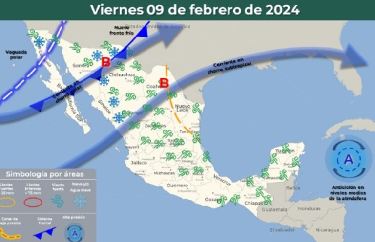 - Baja California, Chihuahua, Sonora, Durango y Sinaloa: Posible caída de nieve o aguanieve.