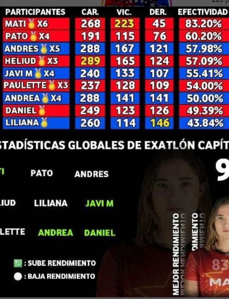 Con base a lo anterior, el Equipo Azul sería el que esté más en riesgo de perder un integrante así es que para que sepas cuál ha sido el rendimiento de cada uno de ellos, te traemos las estadísticas de ellos, según la cuenta de Instagram Datos.examx, previo a lo que sucederá en este capítulo 101.
