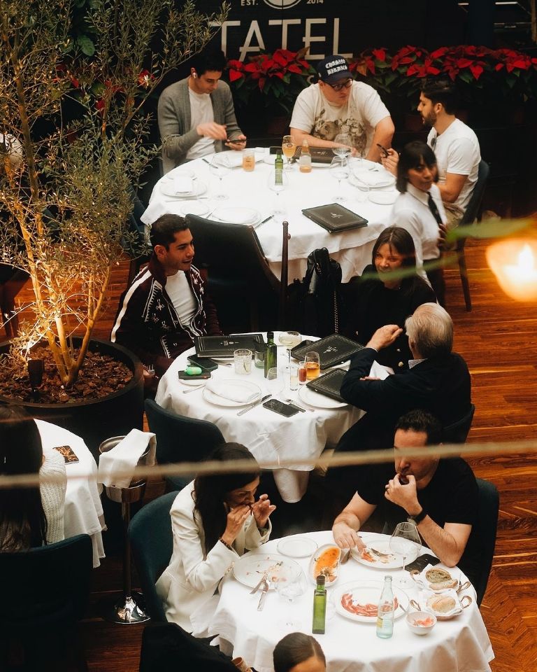 Con una barra que evoca los años 20 con un toque modernizado perfecto para disfrutar de cocteles, hasta un amplio salón con doble altura y techo de cristal que recrea la sensación de estar en el jardín de una casa colonial, pero con todas las comodidades de un espacio interior, el restaurante Tatel de Cristiano Ronaldo en la CDMX destaca aún más por su rooftop, que ofrece una experiencia única con música en vivo y una impresionante vista de la ciudad.