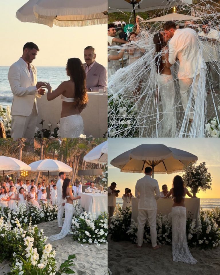 El festejo se llevó a cabo el viernes pasado a pocos metros del mar. Por diversas publicaciones de los familiares y amigos, que lograron que los seguidores reposteen estas imágenes, han logrado que todos logren presenciar, de alguna manera, La Beboda. La felicidad en el intercambio de votos y sus miradas de recién casados han revolucionado todo México.