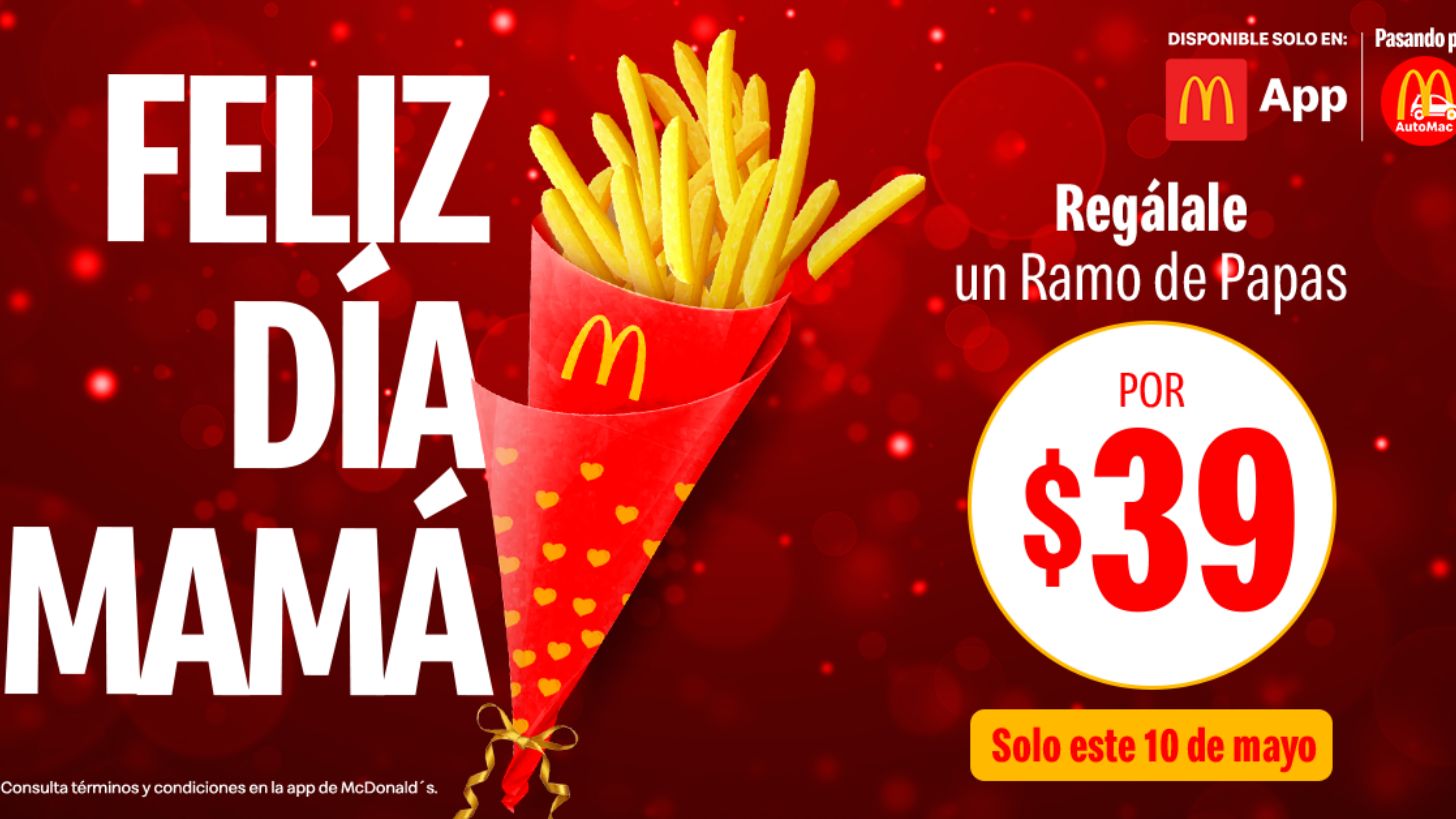 Disfruta con tu mamá un día especial compartiendo un ramo de papas de McDonald 's, delicia que estará disponible solo a través de la app del restaurante con opción para recoger exclusivamente en el Atomac más cercano a tu ubicación.