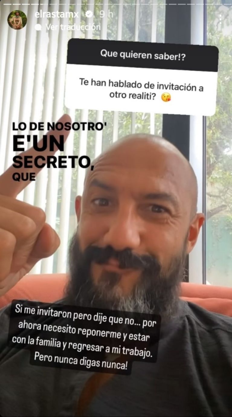 Aunque no dio detalles sobre si la producción de Exatlón México se acercó a él en los últimos días, Rasta compartió en sus redes sociales que un famoso reality show le ofreció volver aparecer en la televisión, pero este decidió rechazar la jugosa oferta, pues quiere recuperar el tiempo perdido con su familia.