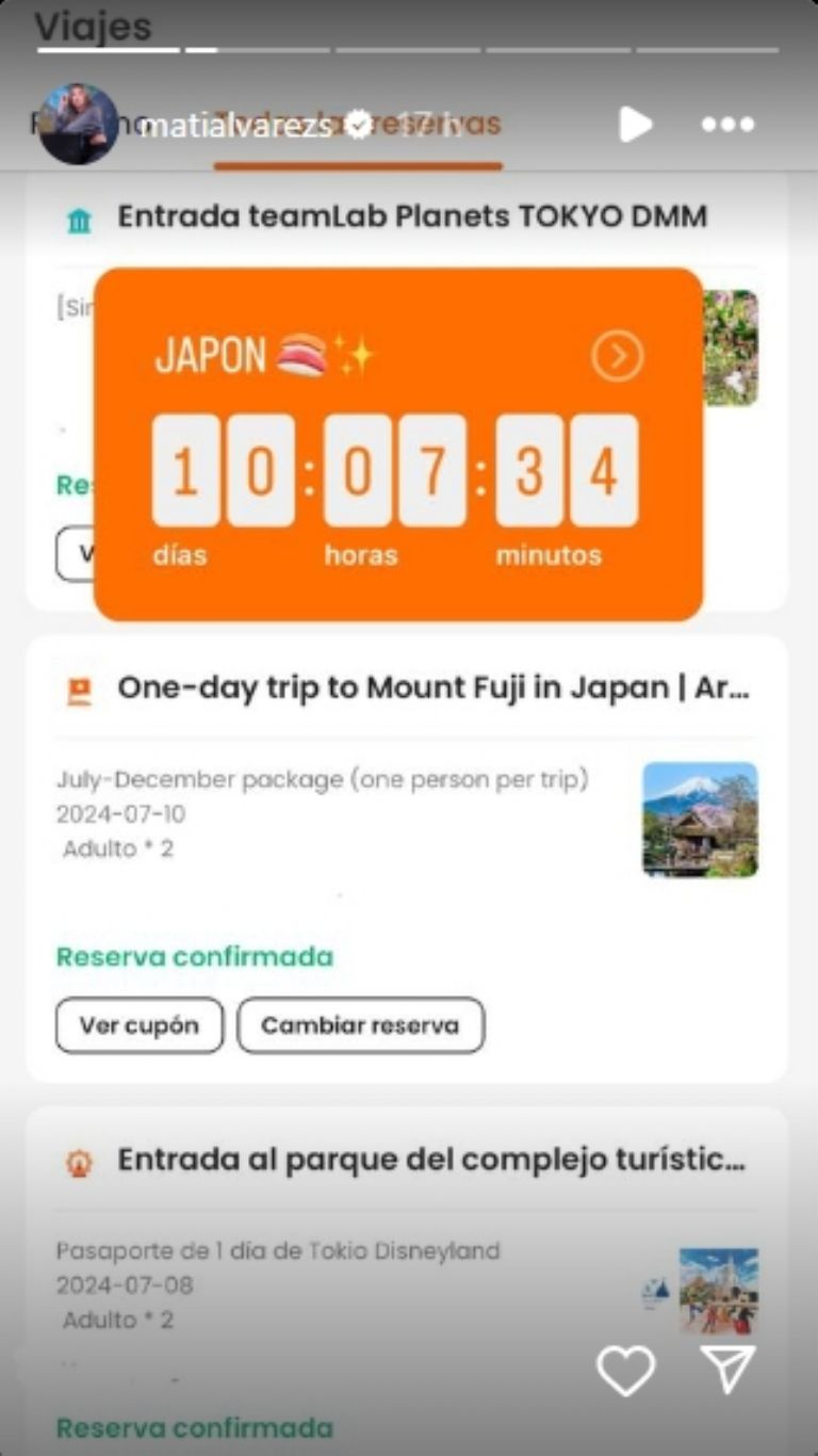Ya con su decisión tomada y muy seguramente con su nuevo contrato ya firmado, Mati Álvarez decidió hacer el que seguramente será su último plan antes de enrolarse a su nueva empresa, por lo que decidió irse de viaje a Japón y visitar Tokio Disneyland, más específicamente el museo TeamLab Planets, que combina el arte digital y la belleza de la naturaleza en un show inmersivo de luz, agua y sonido.