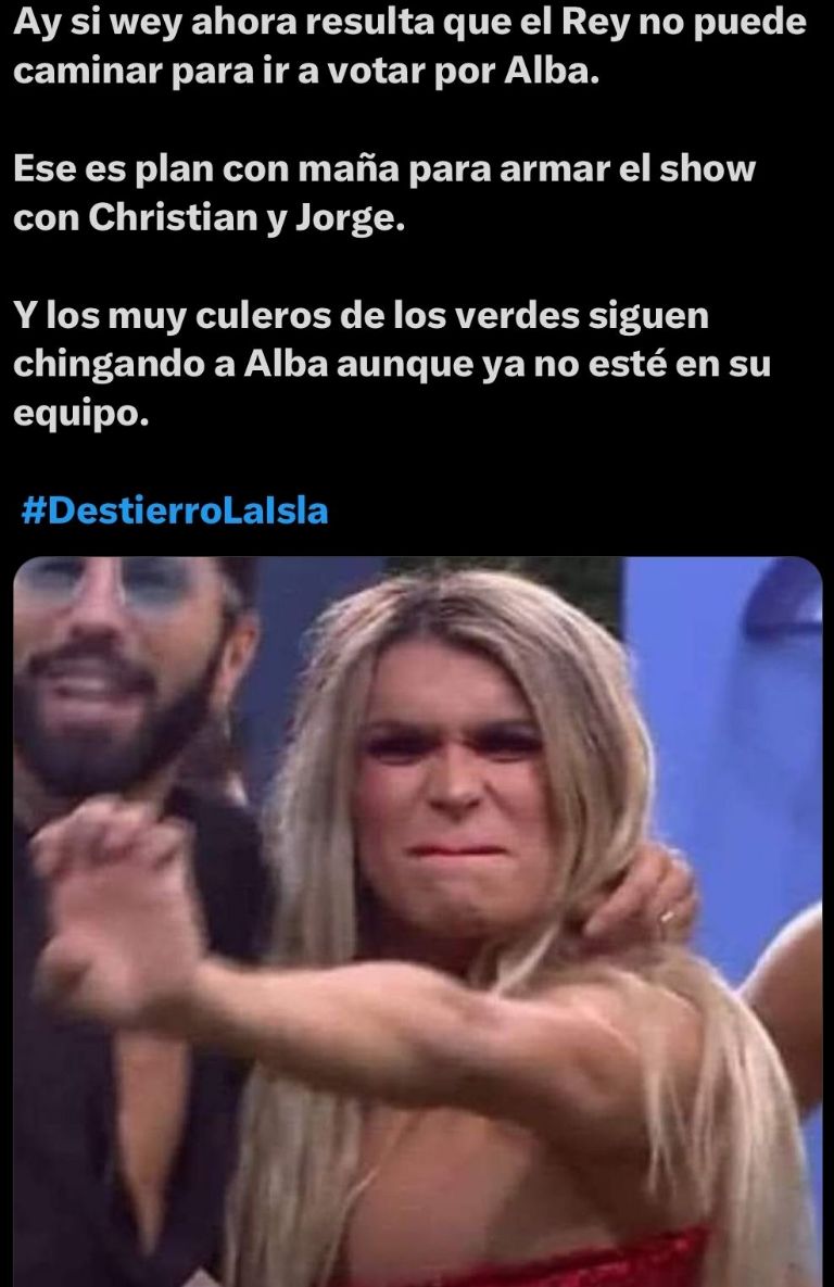 Al parecer la estrategia de Diego Garciasela no le salió, puesto que les habría ofrecido a los Naranjas mandar al Duelo de Eliminación a Alba, pero al final y por estrategia, quien estuvo en la Pugna Máxima fue La Bea, quien fue la segunda en salvarse y con ello hizo que Joselay se convirtiera en el cuarto eliminado de la Isla 2024 este viernes 5 de julio, así que los MEMES y el público llora la triste salida de este participante.