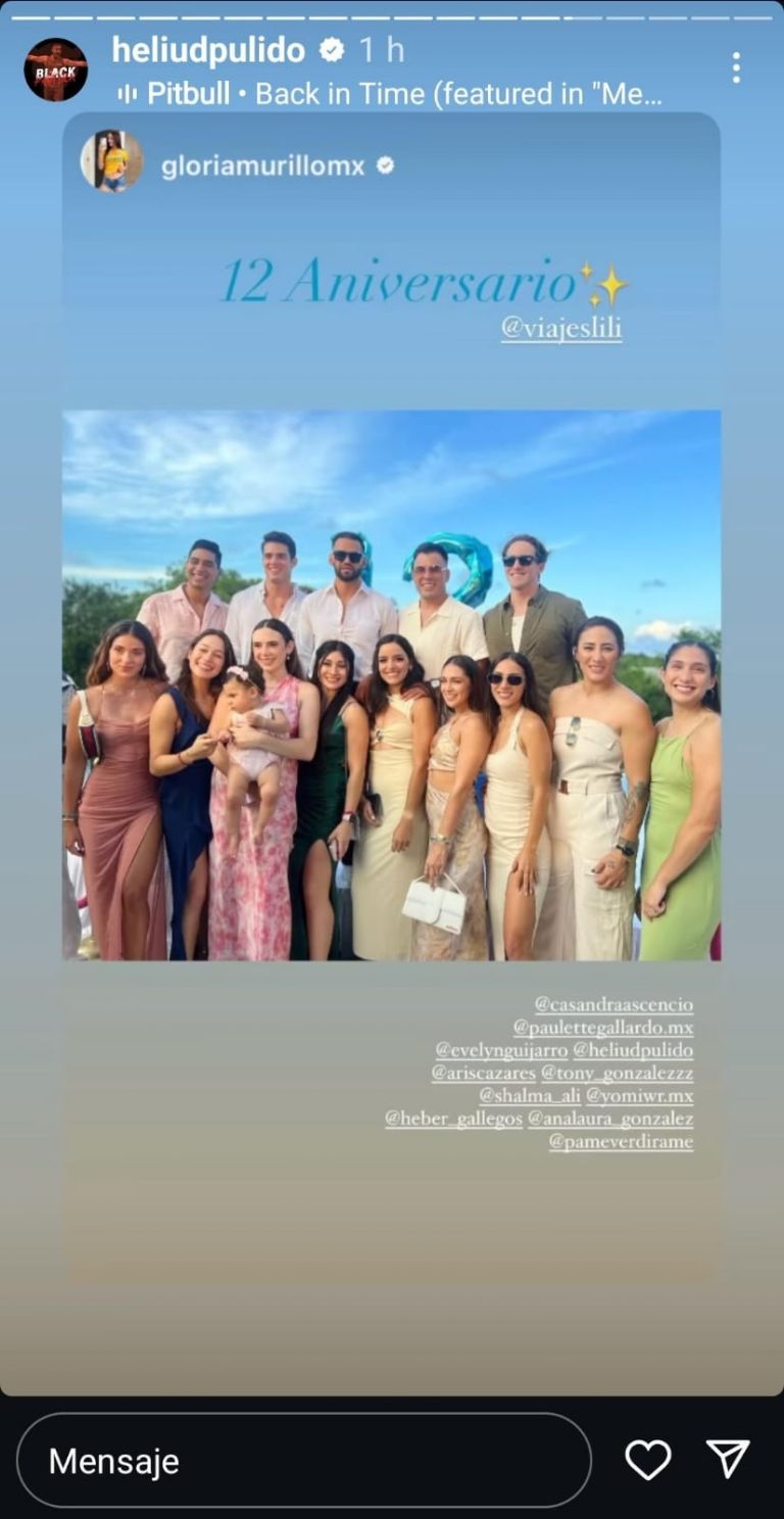 Fue en redes sociales donde Heliud Pulido presumió asistencia al lado de su esposa Pamela Verdirame al aniversario de esta agencia de viajes, la cual se vistió de manteles largos para festejar su cumpleaños número 12 con una celebración que arrancó el viernes 16 y culminará el martes 20 de agosto. Para eso, invitó a figuras de la farándula de la talla del campeón de Exatlón México, Wendy Guevara, Nicola Porcella, Pedro Sola, Kunno entre otros.