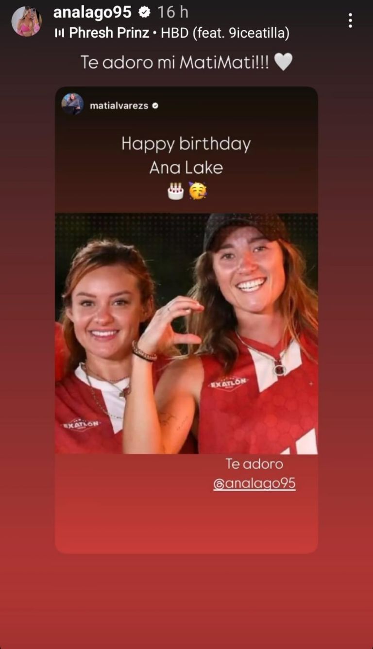 Fue precisamente a través de esta red social donde Mati Álvarez lanzó un emotivo mensaje a Ana Lago por su cumpleaños, subió una foto de ambas en Exatlón México con la frase “Happy Birthday Ana Lake. Te adoro @analago95”. La respuesta de la festejada no se hizo esperar, agradeció el gesto con un “Te adoro mi MatiMati”. A ambas figuras se les extrañará en la nueva temporada del reality show de TV Azteca, todo indica que se ausentarán.